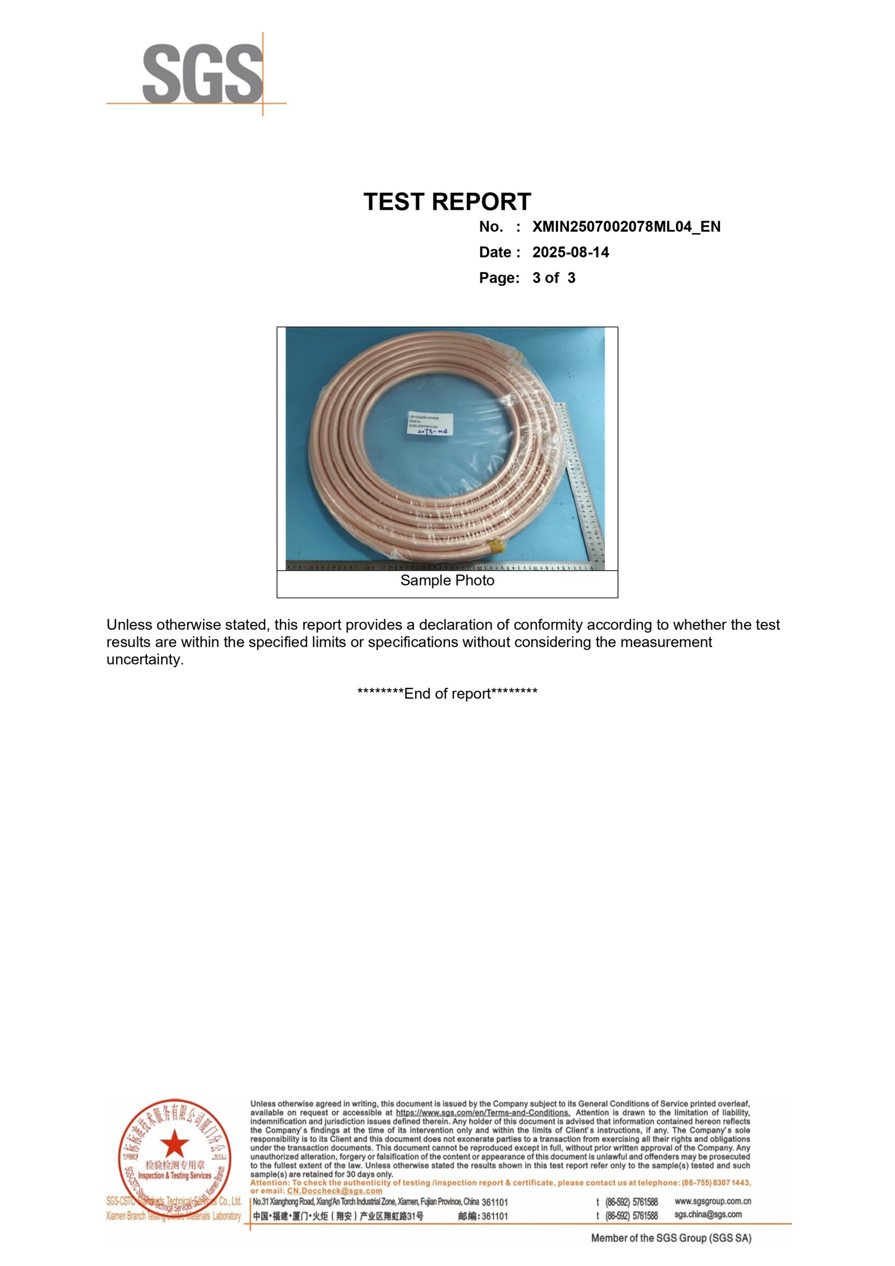 حاصل على شهادة المواصفات الأمريكية ASTMB280 نقاوة النحاس % 99.96