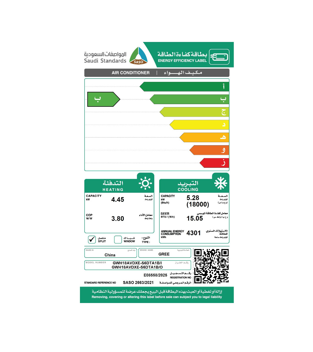 مكيف جري اسبليت جداري، اي بلس، حار بارد، قدارة 18000 وحدة ، انفرتر- واي فاي – ذكاء اصطناعي – تنظيف ذاتي – تعقيم – اربعة اتجاهات – فريون 32 – GWH18AVDXE-S6DTA1B